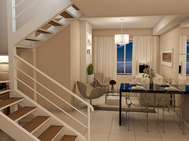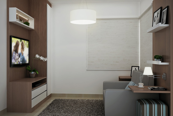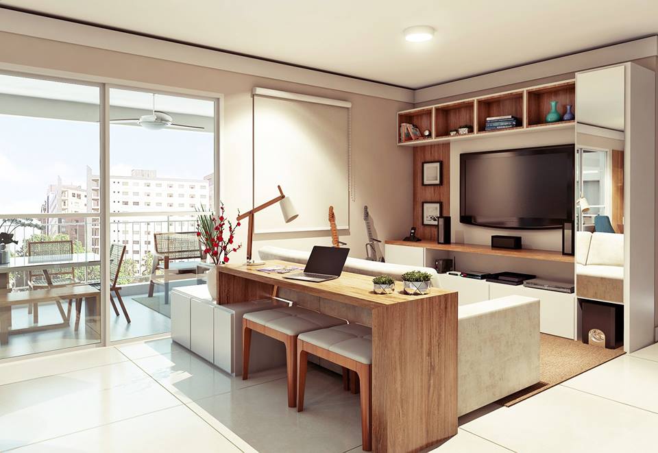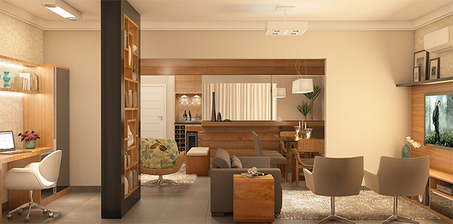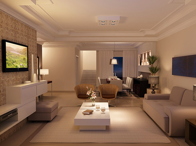 Lugares para apoio de bebidas como mesas de centro e laterais, iluminação confortável para leitura, para receber ou ainda para assistir a TV.