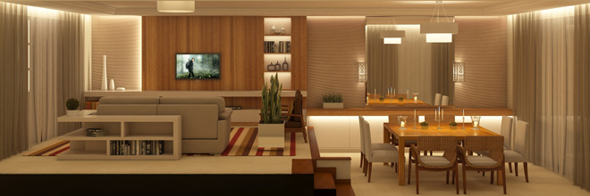 Iluminação adequada seja por fitas LED para iluminação indireta ou por pontos direcionáveis para criar cenas. E uma iluminação geral correta.